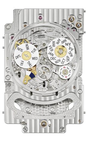 Patek PhilippeFrutto di sette anni di sviluppo, il calibro rettangolare 86-135 PEND S IRM Q SE, che vanta il Sigillo Patek Philippe, è la somma di 912 componenti, di cui quasi la metà sono dedicati al meccanismo del calendario perpetuo. Metterlo a punto ha comportato il deposito di nove brevetti relativi a innovazioni e ottimizzazioni che permettono, in particolare, di garantire l’affidabilità a lungo termine, ridurre il consumo di energia del calendario perpetuo, semplificare ulteriormente l’utilizzo e rendere sicure le funzioni contro qualsiasi manipolazione errata.