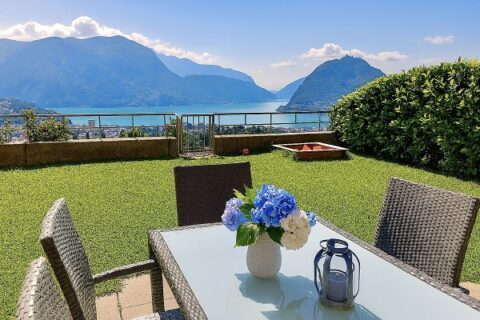 A pochi minuti da Lugano e dal TASIS, spazi luminosi e ben distribuiti in elegante contesto verde con piscina condominiale.