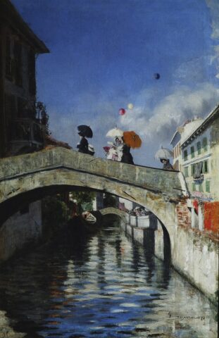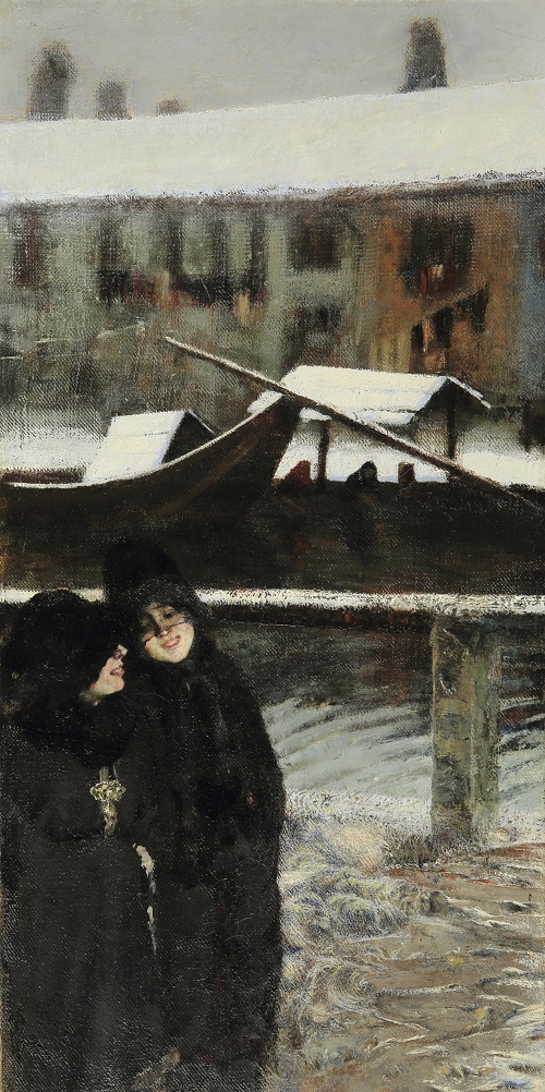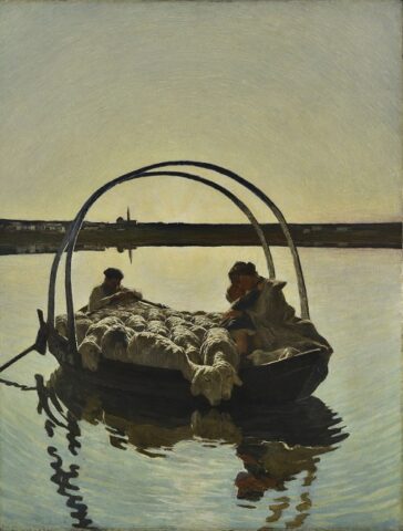 In mostra anche due opere straordinarie come “l’Ave Maria a trasbordo” (prestata dal Museo di St. Moritz), con una maternità che alleggerisce il carico della piccola barca piena di bestiame con il riflesso delle onde e “Ritorno dal bosco”, ove la neve fluttua in prospettiva circondando il carretto pieno di legna e rendendo più leggero lo sforzo della contadina (opera che nasconde un quadro che si credeva perduto da un secolo e che ha comportato studi di oltre 5 anni).
