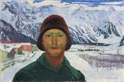Viene in mente un dipinto di Giovanni Giacometti, il papà, pittore postimpressionista. Forse il suo più bello, l’Autoritratto del 1899. Giovanni troneggia al centro. Robusto, forte, colorito, baffi a manubrio, lo sguardo dritto e deciso. Come sfondo le montagne innevate della Bregaglia contenute da una larva di cielo. Sulla sinistra il villaggio, sulla destra un misterioso, sottile filo nero, strisciante come un bruco. Se lo guardi con attenzione, meglio con la lente, vedi che quel bruco indolente e fastidioso è un funerale. Si scorgono persino i quattro che reggono la bara nel fondovalle cupo, gelido, desolato.